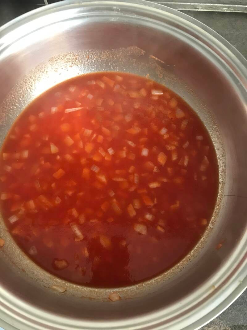 Dopo 5 minuti aggiungo il pomodoro con una mestolata di acqua calda , lascio cuocere 10 minuti, aggiungo una puntina di sale.